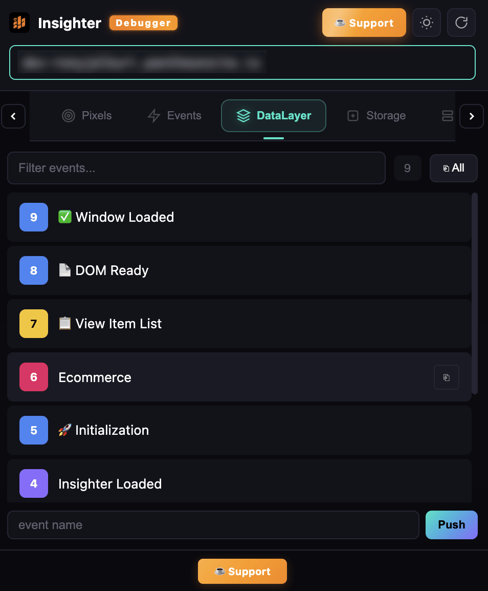Deep-inspect dataLayer pushes with search, filter, friendly labels & expandable tree view.